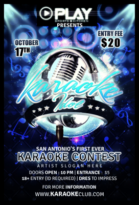 1) The first 20 contestants signed up and paid for the competition are in... Is on a first-come-first-serve bases. Professional singers will not be able to participate. 2) The first week of competition is where the panel of judges will determine the finalist of the 1st round and it will be announced at the end of the night where each of the winners will be selected to participate on the final competition . We will be hosting this karaoke competition for 4 weeks straight.. 3) Review contest schedule uploaded on our facebook or website for location and times of our next competition event. They will be no instruments or tracks played everything will be a list of songs in a karaoke book where contestants will pick songs from. 4) You will score more with the judges if you have your group of followers and supporters, however it won't guarantee winning results. 5) The top 5 singers will receive a prize and a pass to the final competition where we will be giving away prizes for 1st, 2nd and 3rd place.. 6) Contestants, their family members or friends are not allowed to have any contact with any judge during the contest performance periods. Offering bribes of any nature to a judge to help advance a contestant is strictly prohibited. 7) Contestants, their family member or friends who argue the decision of the judges may be considered unruly and the contestant may be disqualified from advancing in competition. DECISION OF JUDGES ARE FINAL. 8) Contestants, their family member of friends who exhibit offensive behavior during any portion of the contest will disqualify that contestant from further competition. 9) No profanity or sexually suggestive song lyrics will be permitted. If there is profanity in your song, change it to an appropriate word. Judges will have the right to disqualified. 10) Age to participate 18 and up.. ( Under 18 will be mark as minors) 11) Singer registration fees are $20 ( Fees are non-refundable) ________________________________________________________________________________________________________________________ APPLICATION: By filling out this SINGER APPLICATION to participate in any of KARAOKE IDOL/IAM LATINO contests, it confirms that you agree and will abide by the above rules and guidelines. HOLD HARMLESS: As a participant in the KARAOKE IDOL you will need to agree to indemnify and hold harmless KARAOKE IDOL/ IAM LATINO on account of any claims, charges, or actions resulting from my participation in the contest. PUBLICITY RELEASE: As a participant, you will further acknowledge that your name and photos taken at the contest may be used for media purposes and you will need to authorize the use of you name or image for the purpose of this particular competition. 0 Reviews
