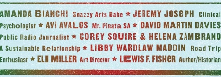 Rain Date: Tuesday June 9 Light refreshments are provided. Alcoholic beverages by The Esquire Tavern are available for purchase for guests ages 21-years or older. Emcees: Randy Beamer and Molly Cox PechaKucha Night San Antonio, in partnership with Las Casas Foundation, presents PechaKucha San Antonio Vol. 18 as part of The Department for Culture and Creative Development’s Cine y Arte at La Villita series PechaKucha (Japanese for “chit chat”) is an event format developed by Tokyo’s Klein Dytham Architecture to encourage creative professionals to share projects and ideas that they are passionate about. Presentations follow a typical PowerPoint format, with the limitation that each presenter must have exactly 20 slides, and each slide advances automatically every 20 seconds (for a total time of 6:40). San Antonio’s first PechaKucha Night was held in February, 2011, and has been a quarterly event ever since. Lewis F. Fisher, Author and Historian Lewis F. Fisher is the author of numerous prize-winning books on San Antonio. They include American Venice: The Epic Story of San Antonio's River, Chili Queens, Hay Wagons and Fandangos: The Spanish Plazas in Frontier San Antonio and Saving San Antonio: The Precarious Preservation of a Heritage. His Maverick Publishing Company, which published 45 general interest nonfiction regional books by 26 authors, was recently acquired by Trinity University Press. Corey Squire and Helena Zambrano, A Sustainable Relationship Helena Zambrano and Corey Squire both decided at a young age that they wanted to save the world, and they came to the same conclusion: that architecture is the way to do it. They both currently work as sustainability coordinators at neighboring architecture firms — Helena at Overland Partners and Corey at Lake | Flato Architects — and serve on the AIA Committee on the Environment (COTE) as chair and treasurer, respectively. They first met at a COTE meeting and bonded over their shared love of daylight simulation and their shared hatred of perforated metal. Corey and Helena live in Dignowity Hill where they spend their time cycling, composting, and subsisting off vegetables from their garden and eggs from their chickens. David Martin Davies, Public Radio Journalist David Martin Davies was once arrested for playing punk rock music inside Wonderland Shopping Mall. Today, he hosts The Source on KSTX Texas Public Radio — a live daily call-in news program. He also hosts Texas Matters, which airs on Texas Public Radio stations. In his 20 years in journalism as a TV news producer, reporter and columnist, his work has been featured on NPR, Marketplace and the BBC. His many awards include the 2008 Texas Radio Journalist of the Year. www.tpr.org Brantley Hightower, Architect and Writer Brantley Hightower founded HiWorks, a San Antonio architecture firm, after studying architecture at the University of Texas at Austin and Princeton University. He has taught at schools including the University of Texas at Austin, Texas Tech University and Trinity University. Brantley produces "The Works," an architecture podcast, and is a regular contributor to Texas Architect magazine. His first book, The Courthouses of Central Texas, was published earlier this year by the University of Texas Press. www.HiWorksArchitecture.com Libby Wardlaw Maddin, Road Trip Enthusiast Libby Wardlaw Maddin is a musician, road trip enthusiast, and San Antonio native. She spent the vacations of her youth packed into a 1978 suburban with her five siblings and parents, who ignited her passion for exploration and in more recent years provided her with a day job flexible enough to take business calls and write emails from the middle of the desert. When she's not hitting the road, she sings in various musical projects with her husband Chris and with the San Antonio Mastersingers. She has also been a host on KRTU's Indie Overnight for 10 years. www.sharkheart.com Amanda Bianchi, Snazzy Arts Babe Amanda Bianchi works at Cinnabar art gallery in Blue Star and is a style contributor for the new LGBTQ publication, Out In SA. . She has also been actively involved with the food and beverage industry in San Antonio for the past five years, working at establishments such as The Monterey and Feast that have helped to shape the current landscape we see today. www.bianchisbits.com Avi Avalos, Mr. Piñata SA Avi Avalos is a Mexican-American artist and San Antonio native. His art is simply a visual language used to connect to the city’s vibrant culture in the most positive light. Mr. Piñata SA was initially created as a research tool for a children's book in 2013 but evolved into an initiative to bring fine art to public places in an effort to create cultural art awareness. Mr. Piñata SA is now an ambassador of San Antonio, and his adventures have taken him across the U.S. as he promotes our City on the Rise. www.mrpinatasa.com Jeremy Joseph, Clinical Psychologist Jeremy Joseph is a psychologist who conducts clinical research on treatments for post-traumatic stress disorder. He is interested in how we relate to our dreams, often working with patients who struggle with nightmares. The California native went to college in Chicago, volunteered in Israel, earned a Ph.D. from the University of Wyoming and did an internship year in Albuquerque. In 2013 he began a postdoctoral fellowship at The University of Texas Health Science Center at San Antonio. If you live in Monte Vista, you’ve probably seen him and his wife walking their greyhound, Sofia. www.jjosephphd.com For more information, go to www.pechakucha.org/cities/san-antonio