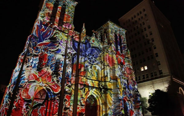 You just come to the Plaza and watch. Bring a blanket or chairs if you want to sit. The show lasts about 20 Minutes. Show times are 9, 9:30 and 10 p.m. on Tuesdays, Fridays, Saturdays and Sundays. 115 N. Main Ave., 210-225-9800, mainplaza.org Tuesday, Friday, Saturday and Sunday nights at 9, 9:30 and 10 PM, weather permitting. Here's what it is about: “San Antonio|The Saga,” is a captivating video art installation on the magnificent façade of San Fernando Cathedral. Created by renowned French Artist, Xavier de Richemont, this 7,000-sq.-ft. projection with custom choreographed music in surround sound narrates the historical discovery, settlement and development of San Antonio and the United States. This 24-minute journey is de Richemont’s first outdoor video art installation in the United States. His public installations can be seen in France, Germany, Spain, Morocco, Mexico and Canada. Marise McDermott, President & CEO Witte Museum. “To change the tenor, shape and reality of the façade is amazing. To challenge the understanding of an iconic cathedral into a universe of art is breathtaking.” Originally built between 1738 and 1755, San Fernando Cathedral is the oldest operating sanctuary in North America. It sits in Main Plaza, the heart of historic We went to see this show and couldn't believe it. This is the most Amazing event in San Antonio. Tuesday, Friday, Saturday and Sunday nights at 9, 9:30 and 10 PM, weather permitting. Here's what it is about: “San Antonio|The Saga,” is a captivating video art installation on the magnificent façade of San Fernando Cathedral. Created by renowned French Artist, Xavier de Richemont, this 7,000-sq.-ft. projection with custom choreographed music in surround sound narrates the historical discovery, settlement and development of San Antonio and the United States. This 24-minute journey is de Richemont’s first outdoor video art installation in the United States. His public installations can be seen in France, Germany, Spain, Morocco, Mexico and Canada. Marise McDermott, President & CEO Witte Museum. “To change the tenor, shape and reality of the façade is amazing. To challenge the understanding of an iconic cathedral into a universe of art is breathtaking.” Originally built between 1738 and 1755, San Fernando Cathedral is the oldest operating sanctuary in North America. It sits in Main Plaza, the heart of historic San Antonio. Main Plaza is one of only four colonial plazas left in the United States, and the only one with a cathedral. About the Artist Xavier de Richemont is a French painter born in 1959 in Algeria. He currently lives and works in Paris, France. Xavier works in traits and lyrical movements, working on the slow mixing and abstraction congruent with narration and music which is projected in each video. PARKING Free weekend parking is available for Main Plaza visitors at one of two Frost Bank street-level parking lots Friday nights 6 p.m. to midnight and Saturdays & Sundays 8 a.m. to midnight. Downtown Tuesday offers Free parking at city-operated parking garages, parking lots and parking meters from 5 p.m. to 2 a.m.